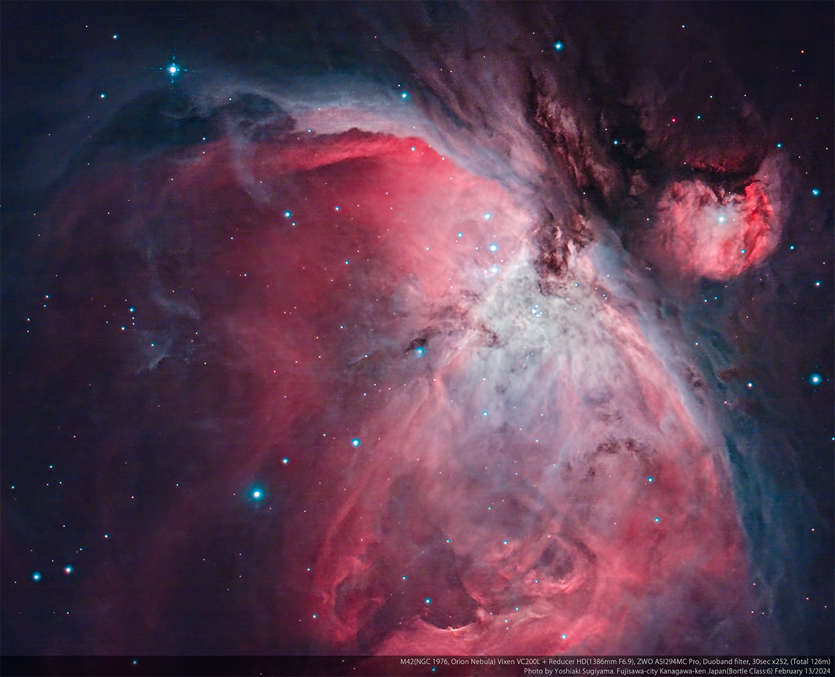・撮影機材:Optics: Vixen VC200L + Reducer HD(1386mm F6.9)、Camera: ZWO、ASI294MC Pro、Filter: ZWO Duoband filter、Mount: VIXEN SXD2、Processing: PixInsight, Lightroom, Photoshop