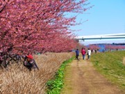 茅ヶ崎市北部の小出川沿いで2月25日から、毎年恒例となった「第17回小出川桜まつり」が開催され、河津桜と菜の花が見頃を迎えている。