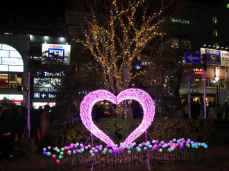 点灯式には、藤沢市観光親善大使を務めるタレントのつるの剛士さん、音楽ユニット「シーキャンドルズ」、鈴木恒夫藤沢市長らが登壇。湘南江の島「海の王子・海の女王」も参加し、カウントダウンに合わせて苑内のイルミネーションが一斉に点灯すると、来場者から歓声が上がった。