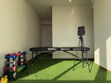 店内は人工芝を敷いた明るい空間が特徴で、ベッドやトレーニング器具を並べる。カウンセリングや状態確認を行った後、独自の療法やトレーニングなどを組み合わせて施術を行う。