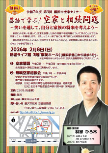 落語家から空き家や相続について学ぶ「第3回 藤沢市空き家セミナー」が2月8日、藤沢の「新堀ライブ館」(藤沢市藤沢)で開かれる。主催は藤沢市住まい暮らし政策課。