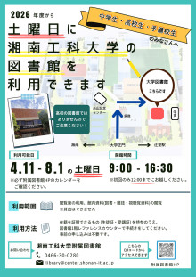 藤沢市辻堂にキャンパスを構える湘南工科大学(藤沢市辻堂西海岸1)が4月11日、中・高生と予備校生を対象に毎週土曜日限定で同大附属図書館の一般開放を始めた。