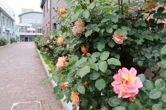 八幡山の洋館(正式名称は「旧横浜ゴム平塚製造所記念館」)は、明治時代の洋風建築を活用した国の登録有形文化財。2009(平成21)年の開館に合わせて庭園を整備し、当初は9種類81本のバラを植栽。その後イングリッシュローズやフレンチローズを追加し、現在は約100種類・約200本となった。庭園はスタッフとボランティアが管理している。