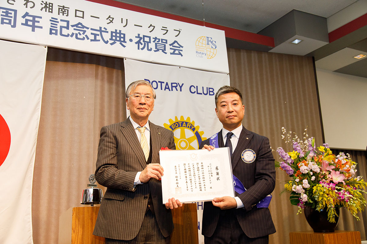 鈴木恒夫藤沢市長からの感謝状を受け取る三浦悠介会長