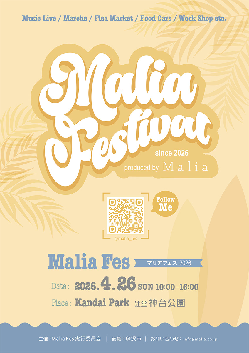 湘南発のママ向けフリーペーパー「Malia(マリア)」を運営するMalia Productionが主催するファミリーフェス「Malia Fes 2026」が4月26日、「神台公園(シークロス公園)」(藤沢市辻堂神台1)で開催される。