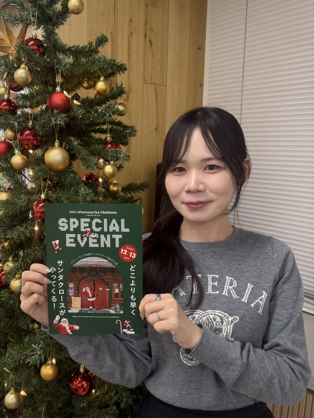 イベントチラシを手にするアフタヌーンティー・リビング広報担当の榎戸胡桃さん
