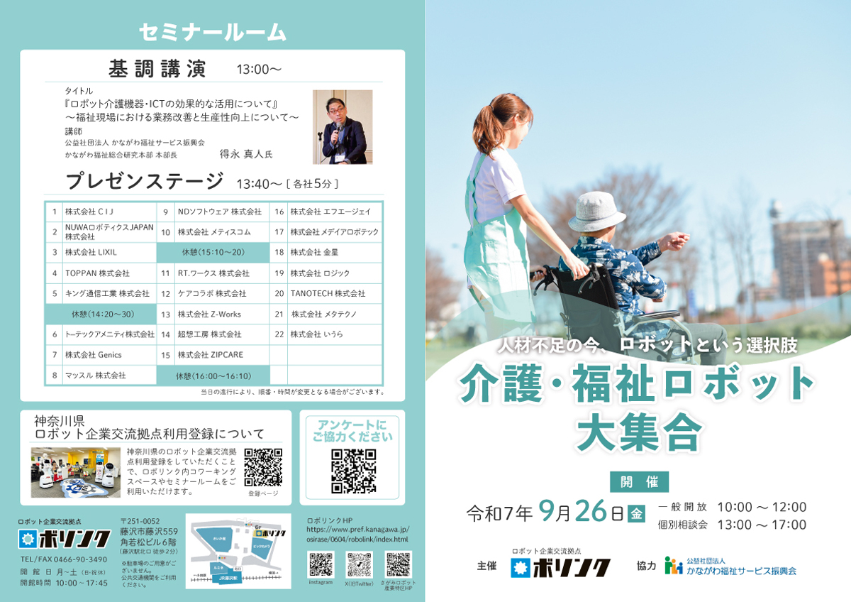 介護・福祉ロボットに特化した展示イベントが9月26日、藤沢駅近くの角若松ビル6階「ロボット企業交流拠点ロボリンク」で開かれ、福祉関係者・企業・自治体ら150人以上が来場した。