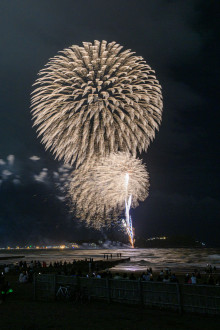 秋の風物詩「ふじさわ江の島花火大会」が10月18日、藤沢市の片瀬海岸西浜で開催され、約4万人の来場者が約30分間にわたり約1000発の花火を楽しんだ。