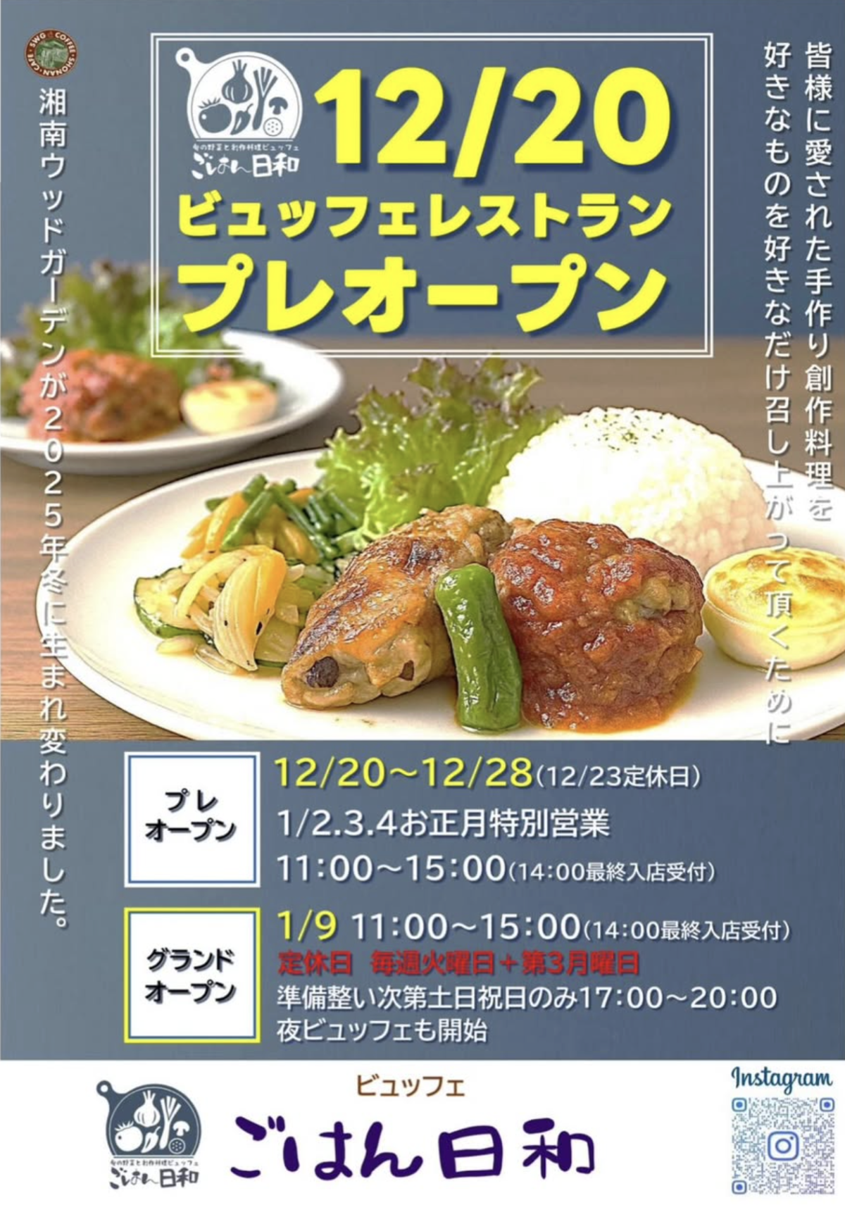 野菜を中心にした創作料理を提供するビュッフェレストラン「ビュッフェ ごはん日和」(藤沢市鵠沼海岸7)が12月20日、鵠沼海岸にオープンした。