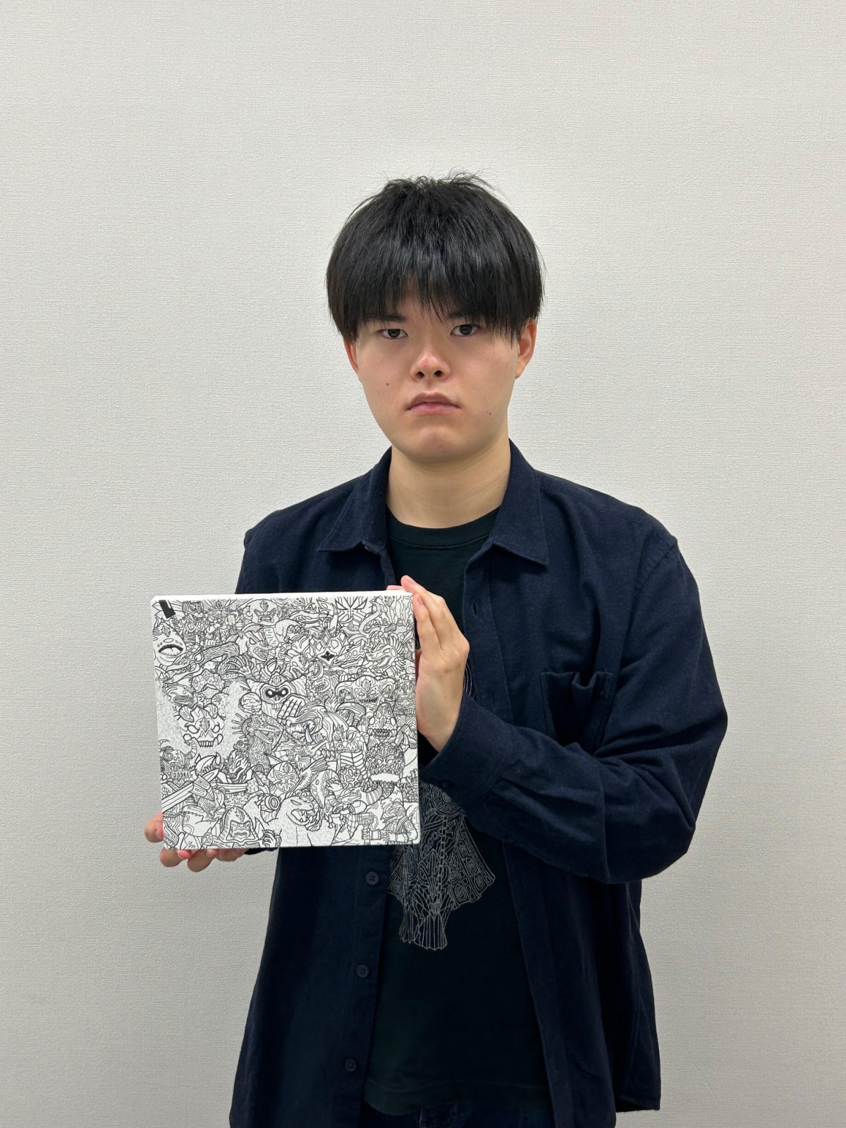 作品を手にする八木志基さん