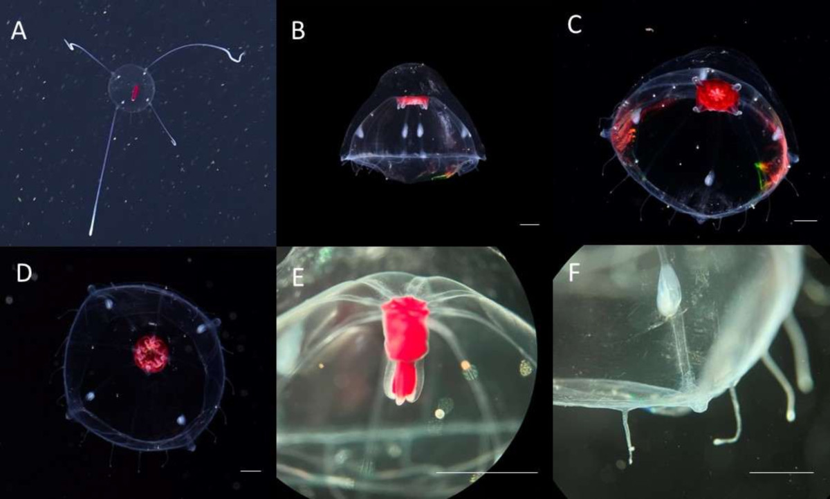新江ノ島水族館(藤沢市片瀬海岸2)と黒潮生物研究所、FullDepthが2月17日、相模湾沖の水深約650メートルで採集した深海性クラゲが日本初記録種と判明し、「ホムラツノガサクラゲ」と命名したと発表した。