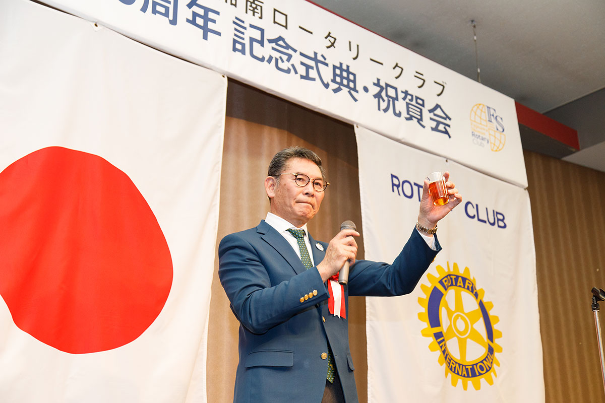 25周年記念祝賀会で乾杯をおこなう大澤宏・第3グループアシスタントガバナー