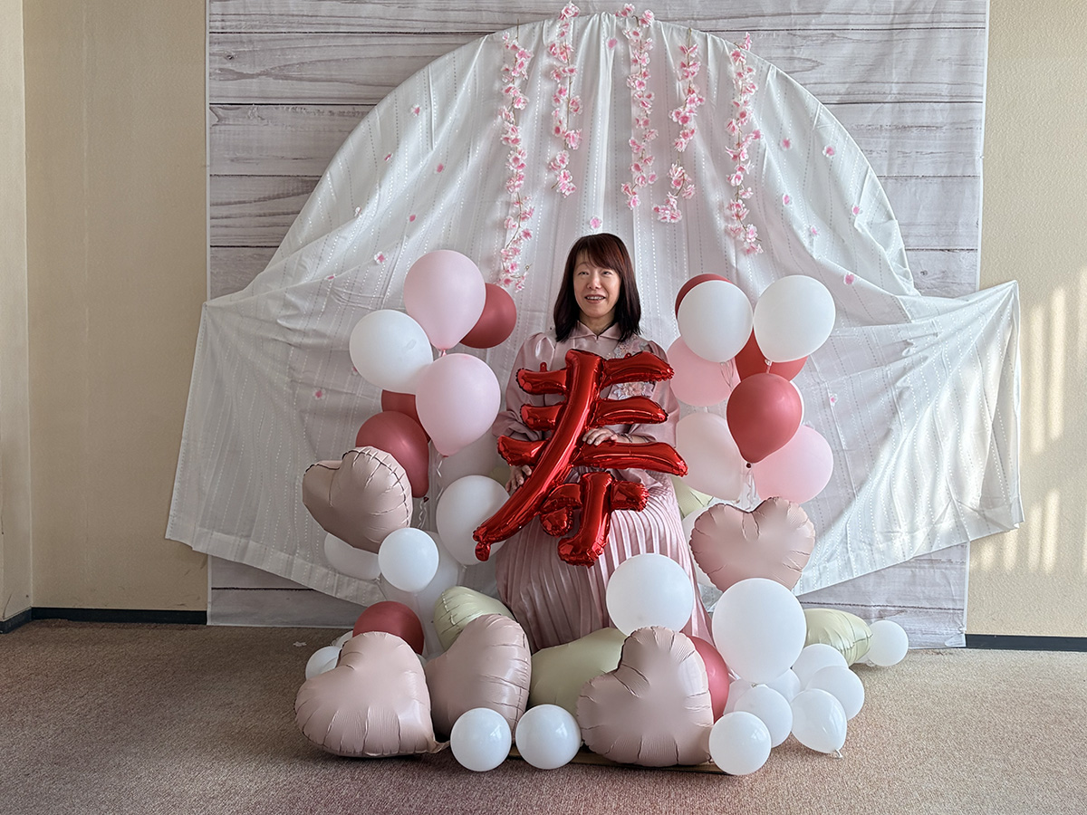 写真館では、ウエディングの技術を取り入れた素材のドレスで、優しく柔らかい雰囲気を演出した