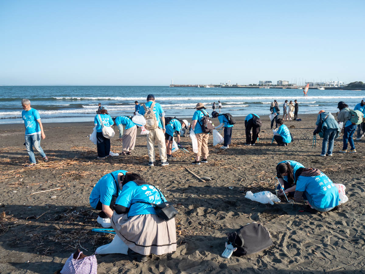 海岸のゴミを拾う参加者。当日は1500名の応募者の中から抽選で選ばれた200名が参加した